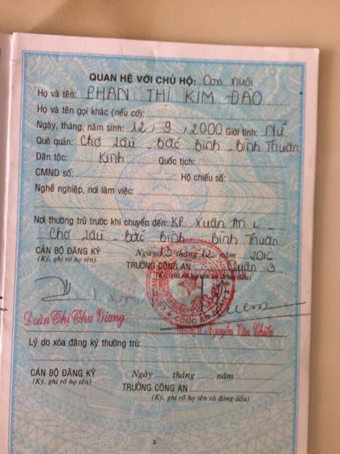 Cụ thể, trường hợp thứ nhất là em Phan Thị Kim Đào, sinh ngày 12/9/2000 học sinh lớp 12 trường THPT Bắc Bình, Bình Thuận. Theo phản ánh của ông Phan Văn Chung, chú ruột của Đào, do em gái mình là Phan Thị Kim Loan (1966) không có gia đình nên năm 2016, bà Loan nhận Đào làm còn nuôi, nhập khẩu từ Bình Thuận và TPHCM từ ngày 13/12/2016.