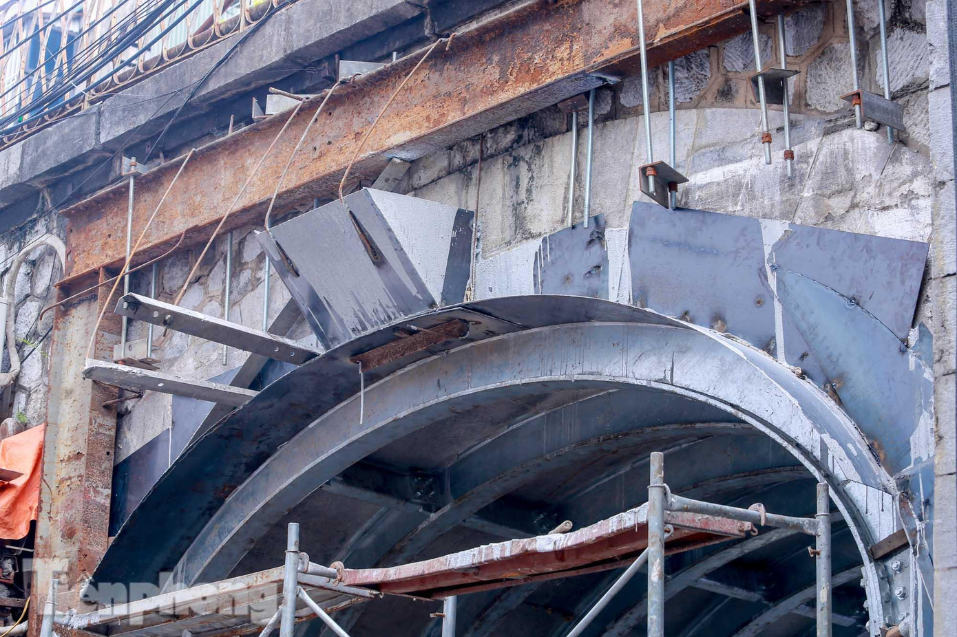 | Sau một thời gian thi công, vòm cầu số 79 (đoạn gần nút giao phố Gầm Cầu - Phùng Hưng) đã được đục xong. |