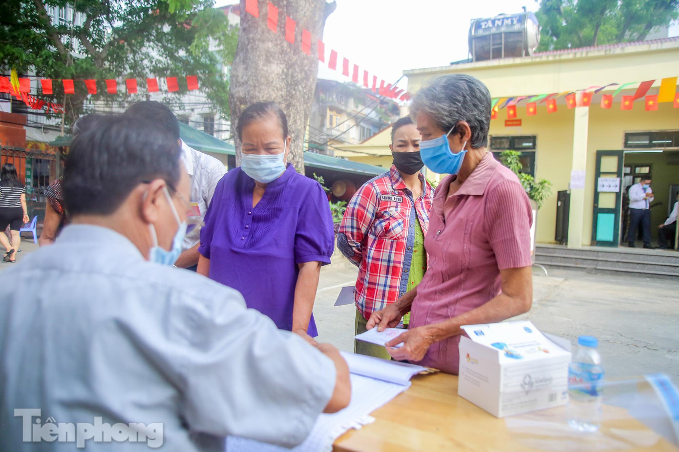 Ghi nhận tại khu vực bỏ phiếu số 2 phường Phúc Xá (quận Ba Đình, Hà Nội) cho thấy, cử tri đến bầu cử đều được đo thân nhiệt, rửa tay sát khuẩn, tổ bầu cử hướng dẫn cử tri đứng giãn cách tối thiểu 2m, giãn cách giữa các buồng lựa chọn đại biểu.