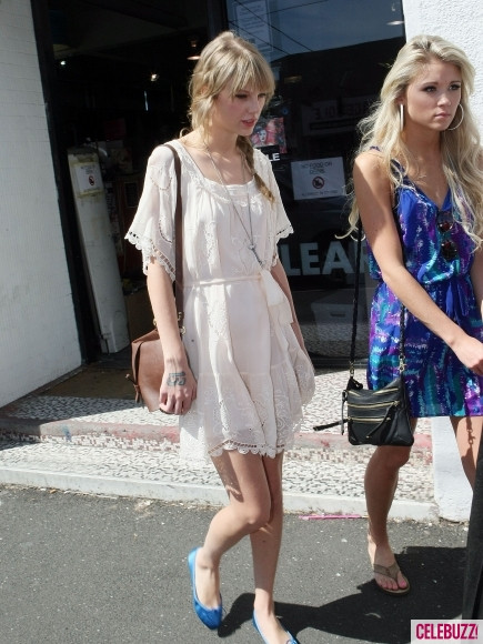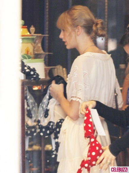 Đơn giản và nhẹ nhàng là những điều dễ thấy ở Taylor. Với “xì-tai” tóc tết để lệch, chiếc váy trắng với họa tiết tinh tế cùng đôi giày nơ búp bê xinh xắn, Taylor tựa như “viên ngọc” tỏa sáng ở những nơi mà cô đặt chân đến.