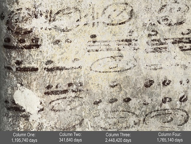 Trên bức tường ghi lịch của người Maya cổ đại có ghi các con số và cách tính lịch của họ bao trùm quãng thời gian dài tới 7.000 năm, nên kéo dài hơn năm 2012.