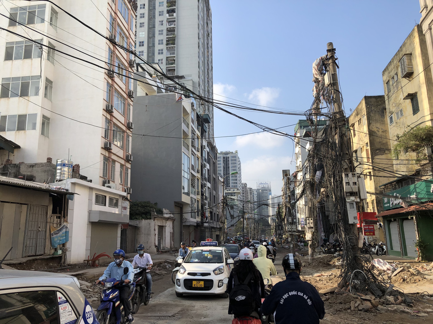 Hầu hết mọi người đều đeo khẩu trang kín mít khi đi qua con đường này.