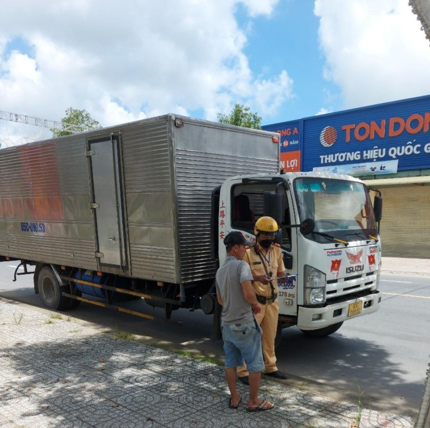| Cảnh sát giao thông Công an thành phố Sóc Trăng xử lý tài xế vi phạm. |