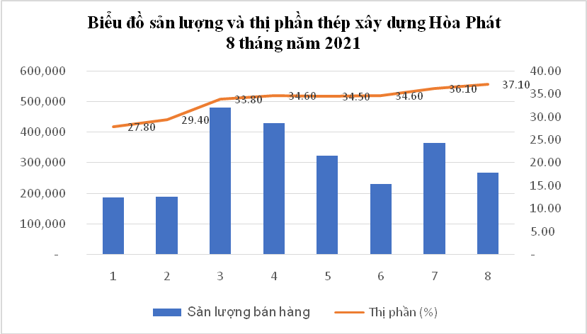 Chỉ số này cho thấy sự tăng trưởng mạnh mẽ của thép Hòa Phát trong bối cảnh thị trường chung gặp nhiều khó khăn do làn sóng dịch Covid-19 lần thứ 4 trên cả nước.