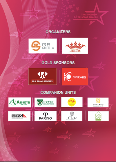 Chương trình được tổ chức bởi công ty CP truyền thông Giang Sơn và ảnh viện áo cưới Julia, với sự đồng hành của các nhà tài trợ Vàng: hệ thống vàng bạc đá quý Huy Thanh Jewelry và học viện Vipower