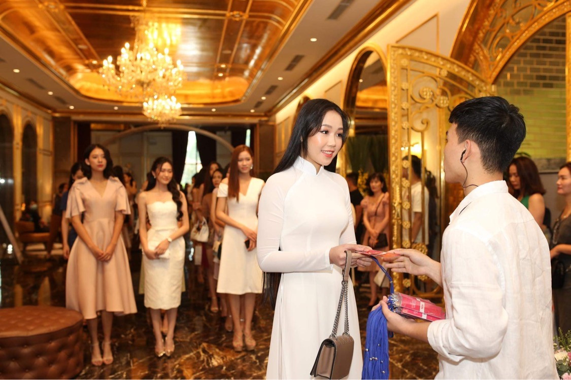 Thí sinh được đo thân nhiệt, sát khuẩn trước sơ khảo phía Bắc Hoa hậu Việt Nam