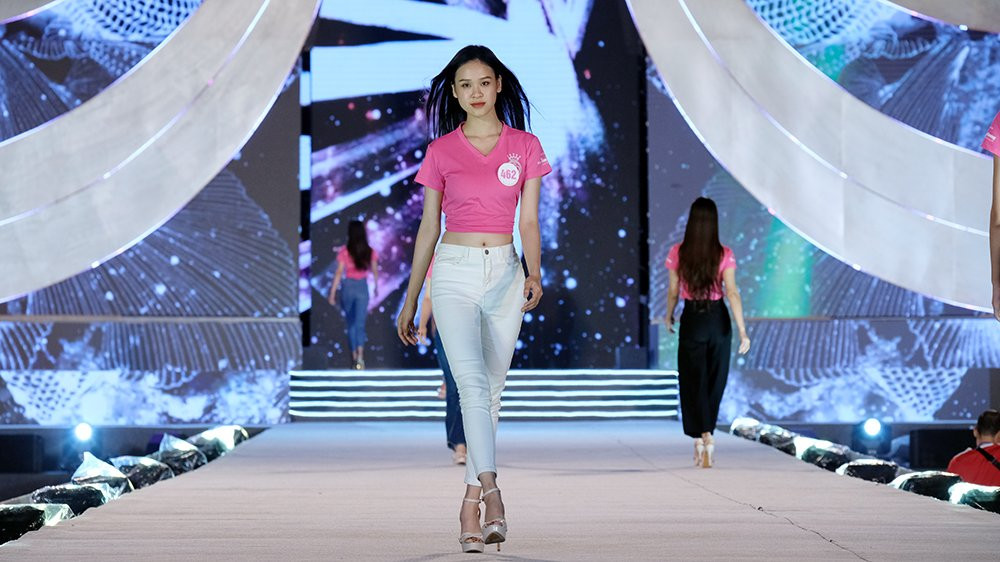 Thí sinh Nguyễn Thảo Vi (SBD 462) sở hữu vòng eo con kiến và thần thái chuyên nghiệp trên sàn diễn.
