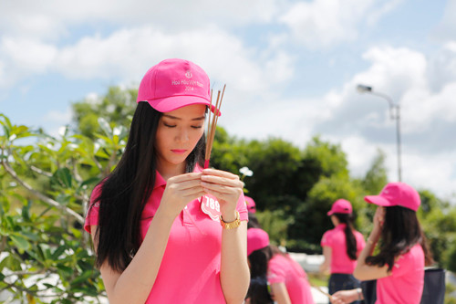 TPO - Sáng 23/11, Ban tổ chức cuộc thi Hoa hậu Việt Nam 2014, đại diện lãnh đạo huyện đảo Phú Quốc (Kiên Giang) cùng 38 thí sinh dự thi Vòng chung kết Hoa hậu Việt Nam 2014 đã dâng hương tại Nghĩa trang liệt sĩ Phú Quốc.