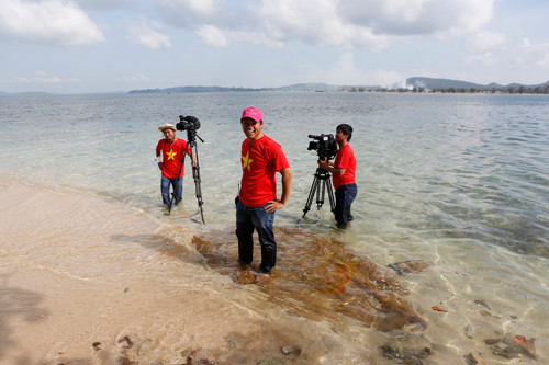 Từ sáng sớm 24/11, 38 thí sinh cùng Ban tổ chức đã lên xuồng cao tốc ra một hòn đảo nhỏ cạnh Phú Quốc (Kiên Giang) để thực hiện những cảnh quay cho MV “Tổ quốc gọi tên mình”. Để động viên các thí sinh, nhà báo Lê Xuân Sơn, Tổng biên tập báo Tiền Phong, Trưởng Ban tổ chức Hoa hậu Việt Nam 2014 cũng có mặt, cổ vũ và ông cũng say sưa hát cùng các thí sinh.
