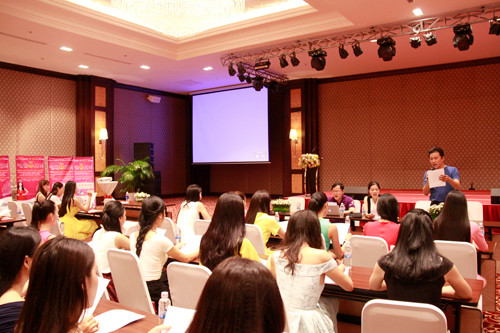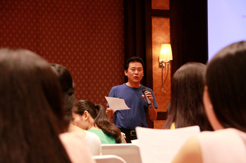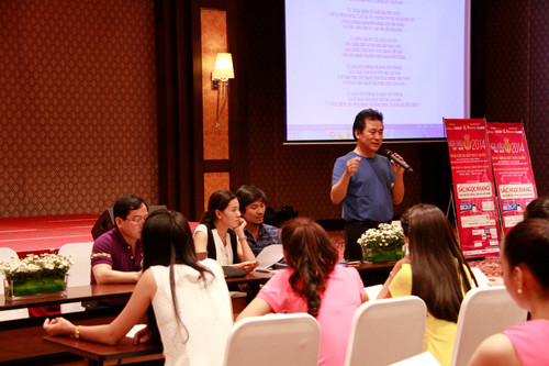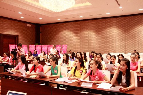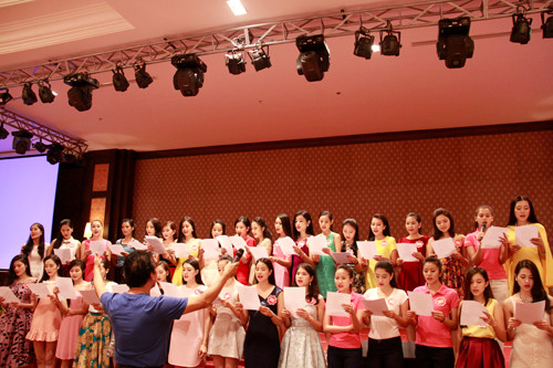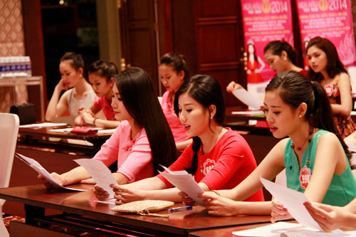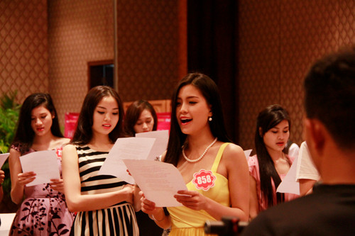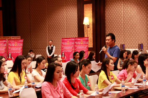 Có mặt tại buổi tập, nhà báo Lê Xuân Sơn - Tổng biên tập báo Tiền Phong, Trưởng ban tổ chức Hoa hậu Việt Nam 2014 cũng cùng tập hát với các thí sinh.