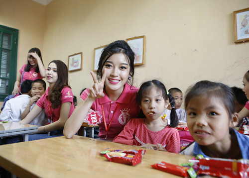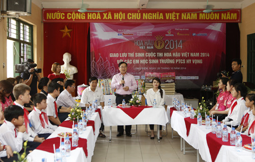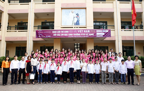 Chiều nay, 40 thí sinh của vòng chung khảo Hoa hậu Việt Nam 2014 khu vực phía Bắc đã có chuyến đi từ thiện đầu tiên. Điểm đến của họ là trường PTCS Hy Vọng, quận Long Biên, TP Hà Nội.