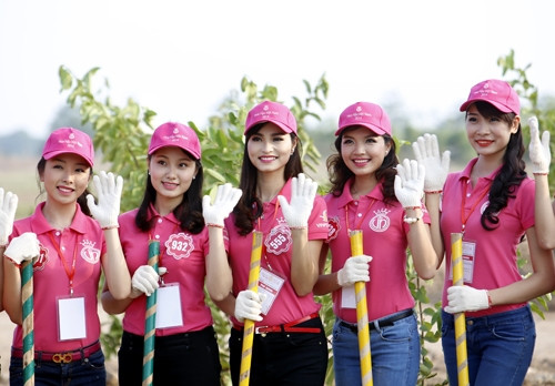 40 thí sinh đã tham gia trồng vườn cây Hoa hậu trong khuôn viên của khu du lịch Nắng Sông Hồng.
