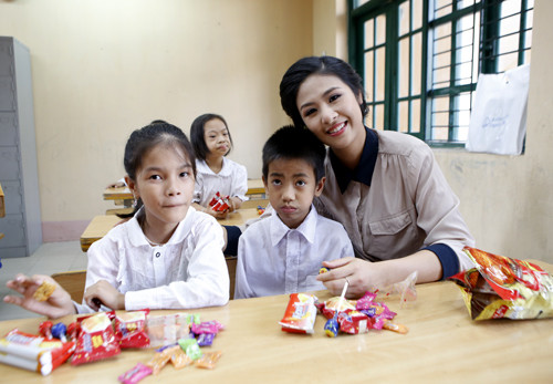 40 thí sinh của vòng chung khảo Hoa hậu Việt Nam 2014 khu vực phía Bắc đã lên từng lớp học để giao lưu, trò chuyện với các em học sinh của trường.