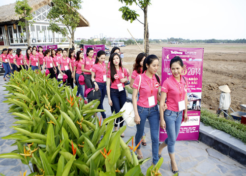 Cũng vào chiều nay, 40 thí sinh đã tới khu du lịch sinh thái Nắng Sông Hồng để tham gia các hoạt động ngoại khóa, chuẩn bị cho đêm chung khảo phía Bắc sẽ diễn ra vào tối ngày 23/10.