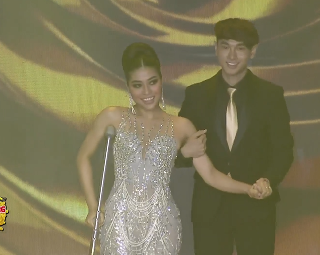 Diện bộ váy dạ hội cut-out cực kỳ lộng lẫy và nóng bỏng, người đẹp nở nụ cười tươi rói đầy tự tin nhưng cũng không kém phần xúc động trước sự ủng hộ và tình cảm của khán giả.