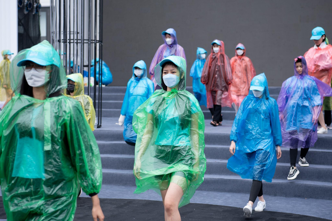 | Trong những hình ảnh hậu trường mới được cập nhật, các thí sinh Miss World Việt Nam 2022 phải mặc áo mưa để tập luyện trong điều kiện thời tiết không ủng hộ. |