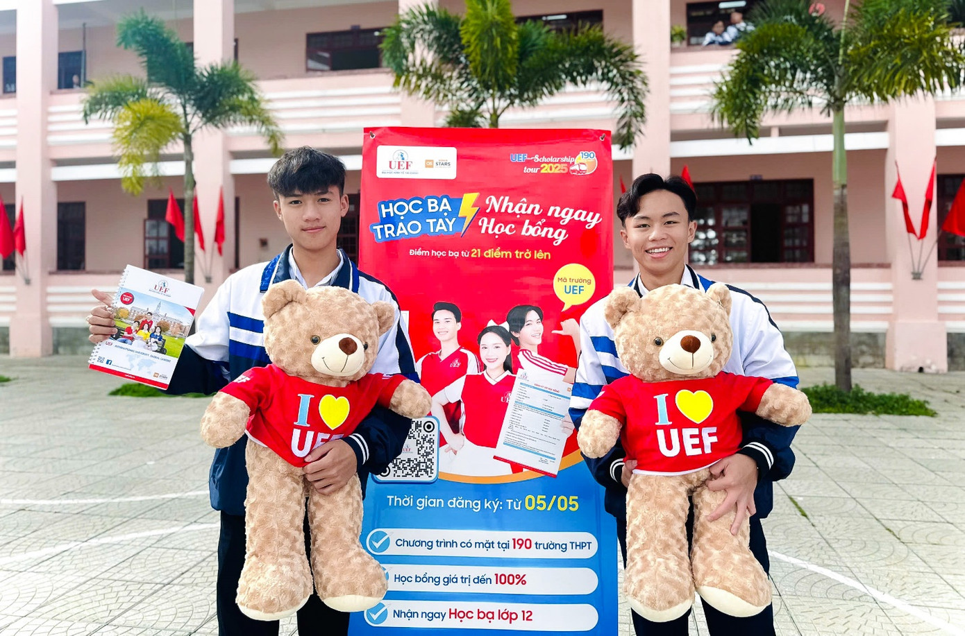 Với chính sách đăng ký xét học bổng sớm bằng điểm học bạ, UEF đã trực tiếp trao hàng trăm suất học bổng giá trị 25%, 50%, và 100% học phí cho những học sinh có kết quả học kỳ 1 lớp 12 với kết quả từ 21 điểm tổ hợp 3 môn. Đây là sự ghi nhận kịp thời, thiết thực cho hành trình học tập chăm chỉ của các bạn, đồng thời giảm bớt áp lực tài chính để các sĩ tử 2k7 an tâm bước vào kỳ thi tốt nghiệp THPT sắp tới.