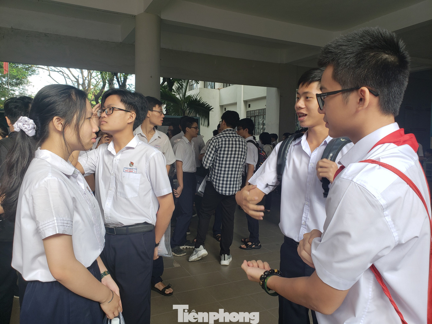 Em Phan Quang Dũng (học sinh trường THCS Nguyễn Thị Minh Khai) cho hay, em và các bạn cùng lớp thi tại điểm thi tại trường THPT Phan Châu Trinh hẹn nhau đến sớm để tranh thủ ôn tập, cũng như trao đổi các dự đoán về đề thi.