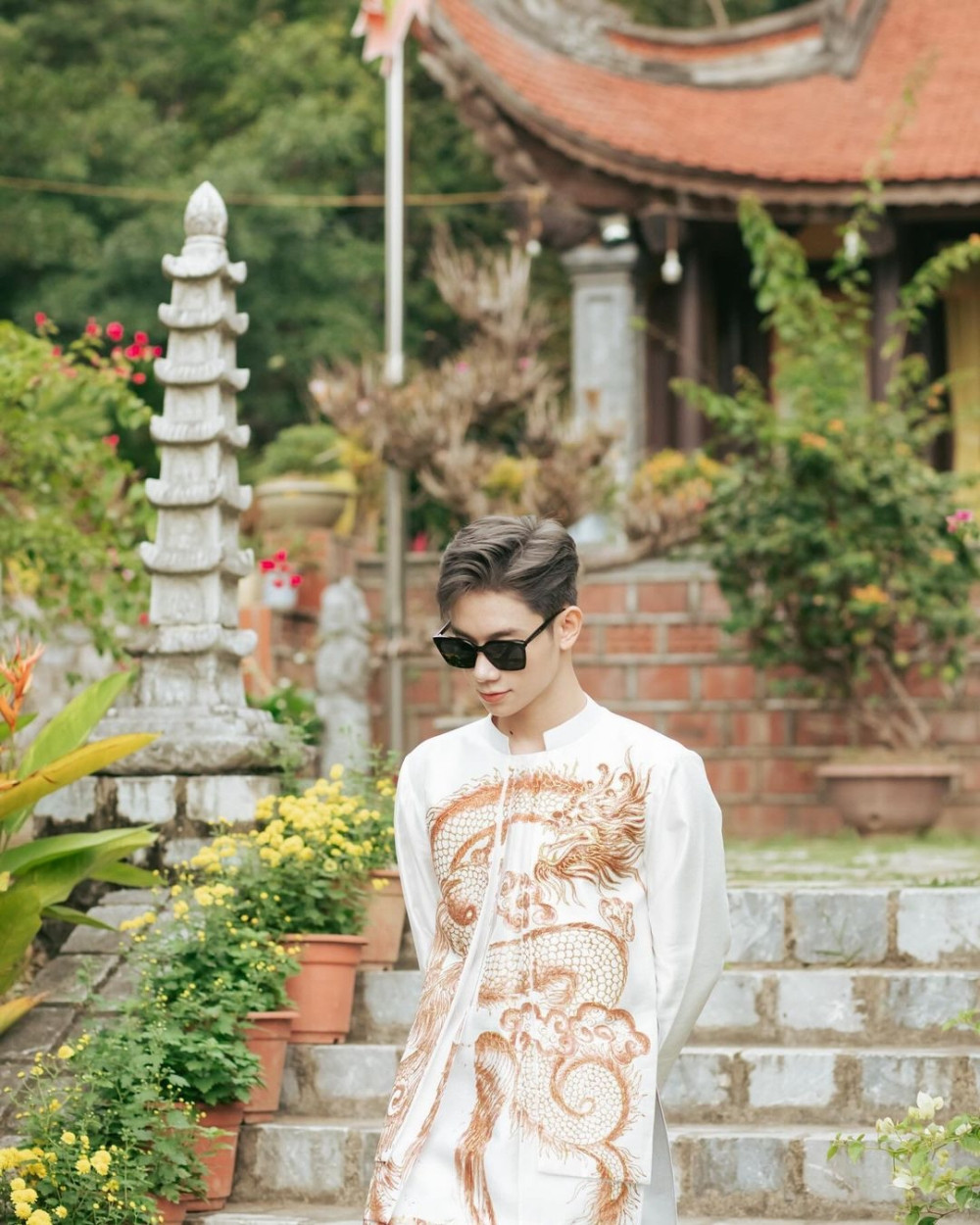 Hoàng Hải diện áo dài dịp Tết vừa rồi.