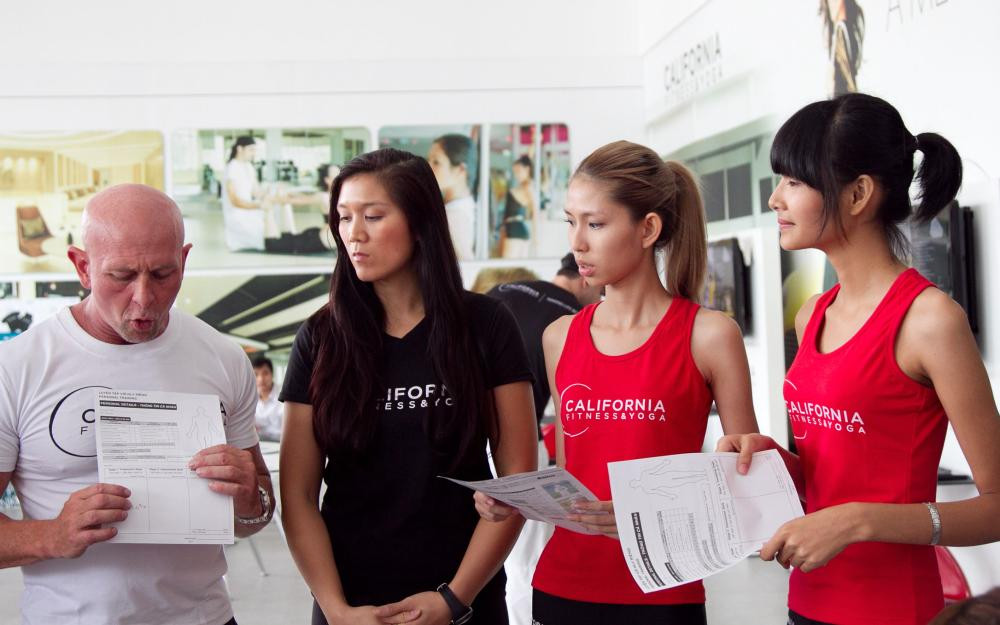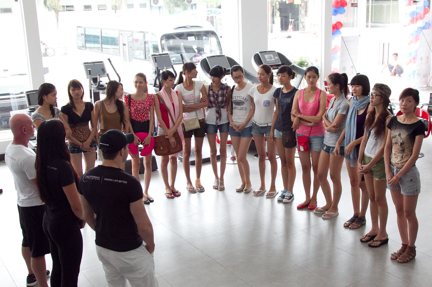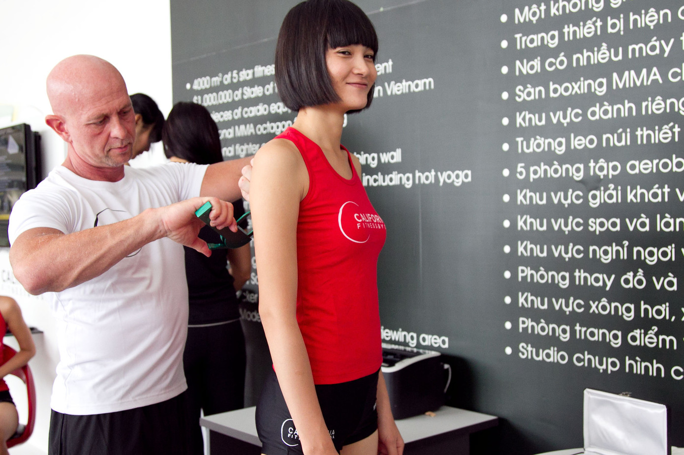 Hình ảnh các thí sinh trong buổi đo trọng lượng cơ thể và kiểm tra lượng mỡ tại California Fitness and Yoga Center:
