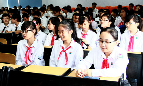 | Đông đảo các bạn học sinh phổ thông đến từ nhiều trường tham dự lễ phát động. |