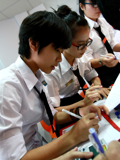 | Các thành viên cùng nhau tính toán. |