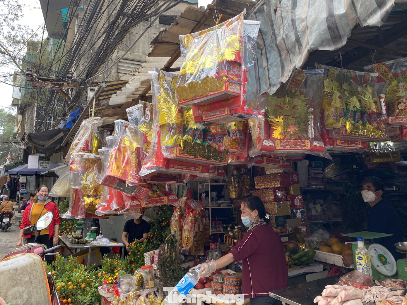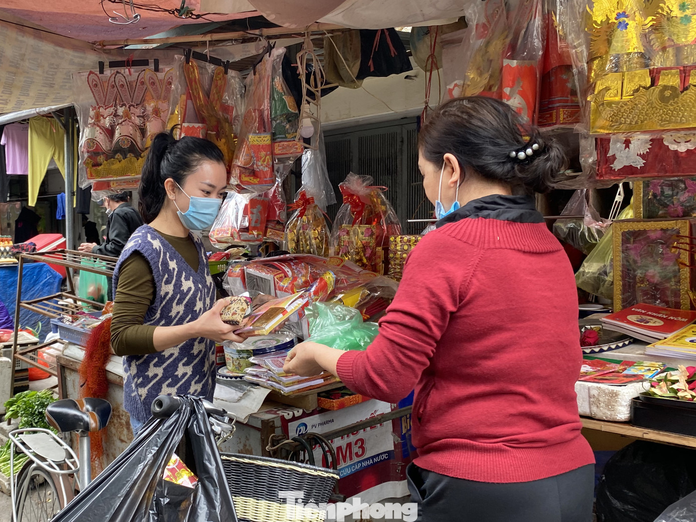 Ngoài bộ cúng ông Táo, tiền vàng, nến, đèn, dầu, trầu cau cũng đắt khách không kém. Trước đó, tiểu thương cho biết, rượu trắng cũng rất đắt hàng do khách mua bao sái bàn thờ cuối năm