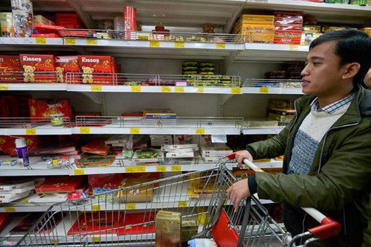 Trong khi đó ở các siêu thị, tại khu vực bày bán chocolate, nhiều kệ đã trống hàng.