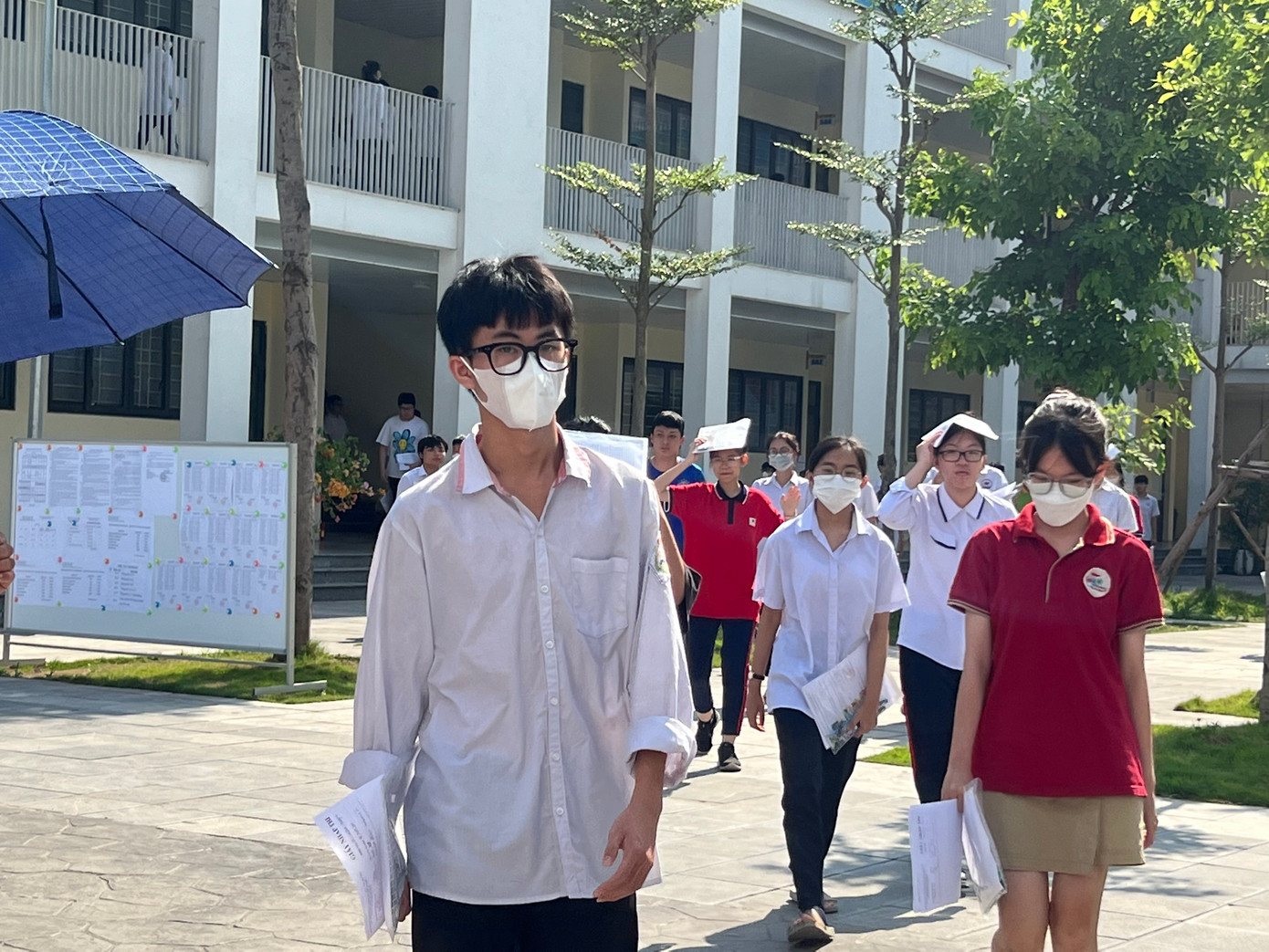 Trần Đình Nam, một trong những thí sinh rời điểm thi đầu tiên chia sẻ, đề không khó, không dễ nhưng em dự đoán chỉ được khoảng 7 điểm do sai 3 câu cuối. "Trước đó, trong quá trình luyện thi em cũng chỉ đạt mức điểm từ 7-8", Nam nói.