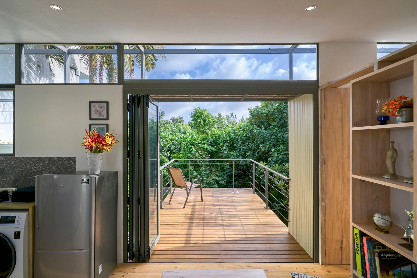 Với lớp phủ bên ngoài và bên trong lần lượt thể hiện các tấm lợp và tấm thạch cao xi măng với khả năng cách nhiệt giảm thiểu sự hấp thụ nhiệt cung khả năng thông gió chéo ngôi nhà luôn mát mẻ.