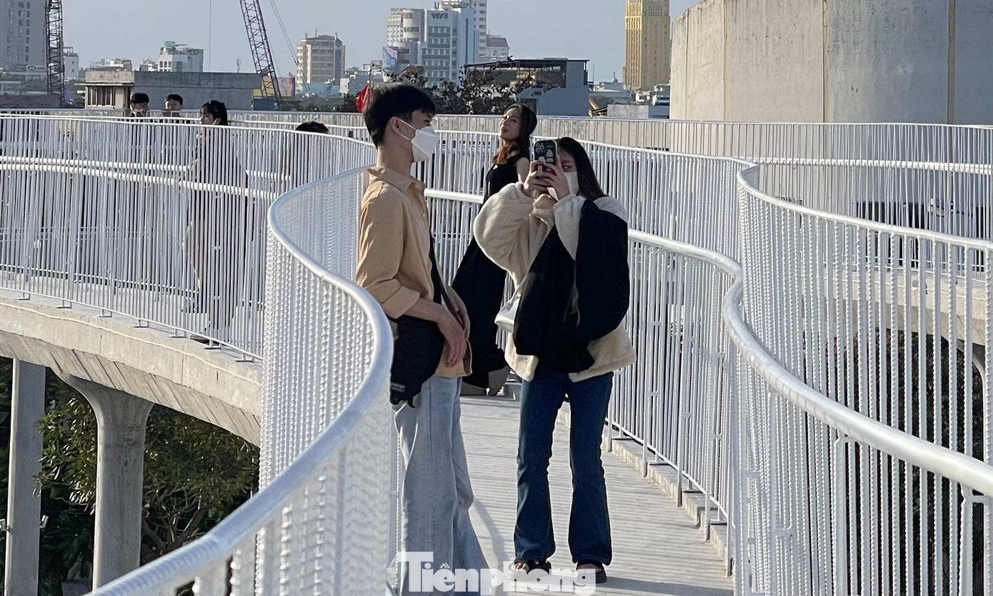 | Tranh thủ lúc đẹp trời, Nguyễn Đông Quốc (SV năm 1 ĐH Bách khoa Đà Nẵng) cùng bạn mình đến đây check in. “Mình đang học kiến trúc nên khi xem dự án trên mạng, mình thích kiến trúc đầy cảm hứng hiện đại, màu sắc tươi sáng, nên hôm nay mình rủ bạn đến đây để tham quan, chụp ảnh”, bạn Quốc nói. |