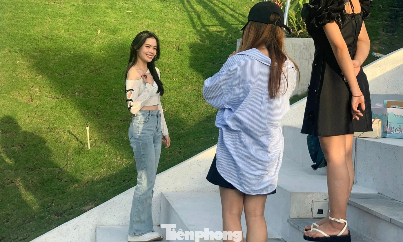 | Nhiều bạn trẻ sau khi chụp ảnh đón Tết sớm tại các địa điểm khác cũng đến đây, tranh thủ lưu lại những bức ảnh đẹp. |