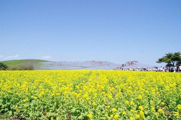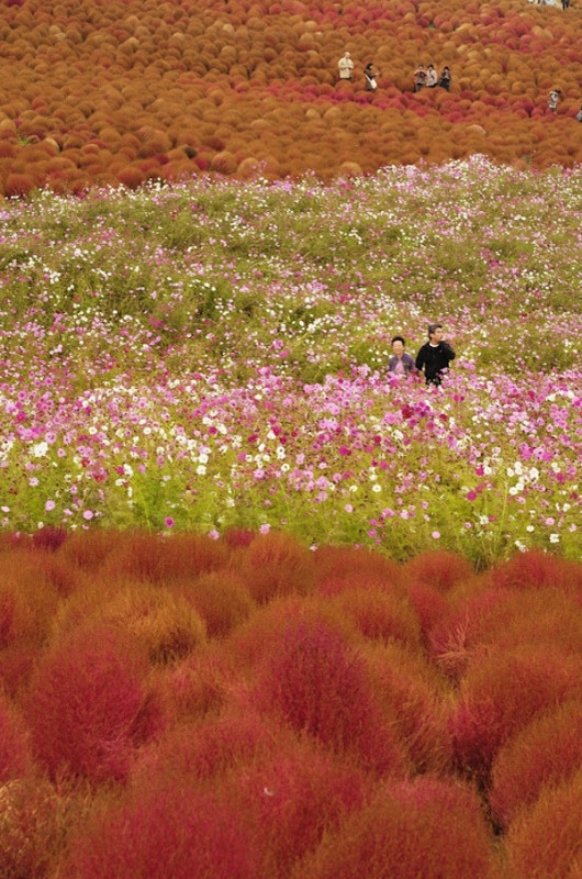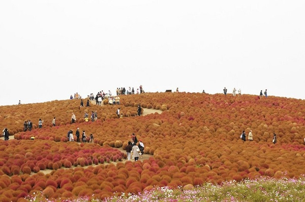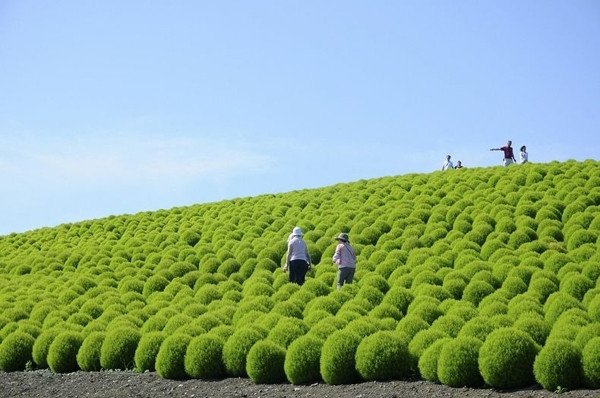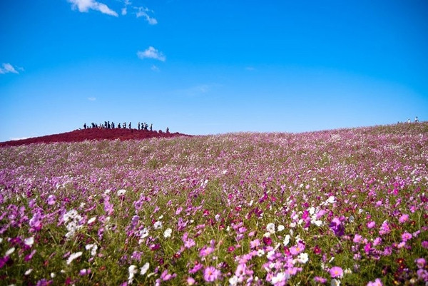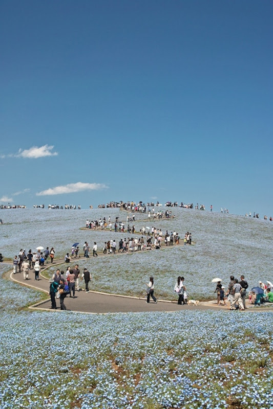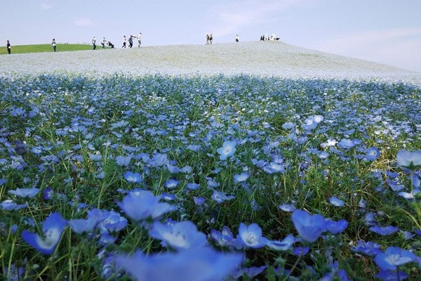 Mỗi ngọn đồi ở công viên Hitachi đều được trồng một loại hoa. Chúng thay phiên nhau nở vào mỗi mùa. Đặc biệt nhất là hoa Nemophila màu xanh dương với 4,5 triệu cây nở đồng loạt vào mùa xuân đẹp mướt mát như bầu trời dưới mặt đất.