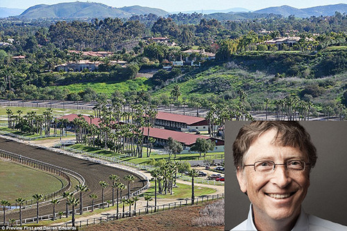 Người đồng sáng lập Microsoft, tỷ phú Bill Gate sở hữu dinh cơ rộng gần 5.000 m2 nhìn ra hồ Washington. Ngoài ra, ông còn nhiều cơ ngơi khác trên khắp nước Mỹ, trong đó bao gồm trang trại ngựa trị trá 18 triệu USD Rancho Paseana ở San Diego. Trang trại rộng 200 mẫu Anh (0,8 km2) có nhà khách, văn phòng, 4 nhà kho, một đường đua ngựa và các cánh đồng rực rỡ. Ảnh: Darren Edwards.