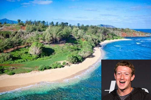 Theo Fobers, CEO Facebook Mark Zuckerberg sở hữu khoảng 47,7 tỷ USD. Tuy nhiên, Mark rất giản dị, vẫn ăn bánh mì kẹp, uống sữa lắc trên bãi biển Hawaii như bao người bình thường khác. Năm 2014, Mark chính thức mua cho mình dinh thự trên đảo Kauai với giá 100 triệu USD, nơi có bãi cát trắng trải dài và biển xanh mênh mông. Ảnh: sfgate.