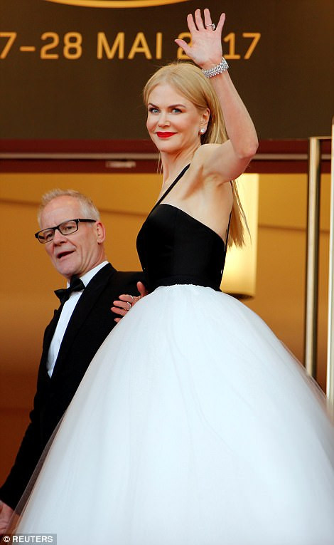 Đến dự buổi chiếu phim “The Killing Of A Sacred Deer” nằm trong khuôn khổ LHP Cannes lần thứ 70, Nicole diện váy tông màu trắng đen đang hot hiện nay.