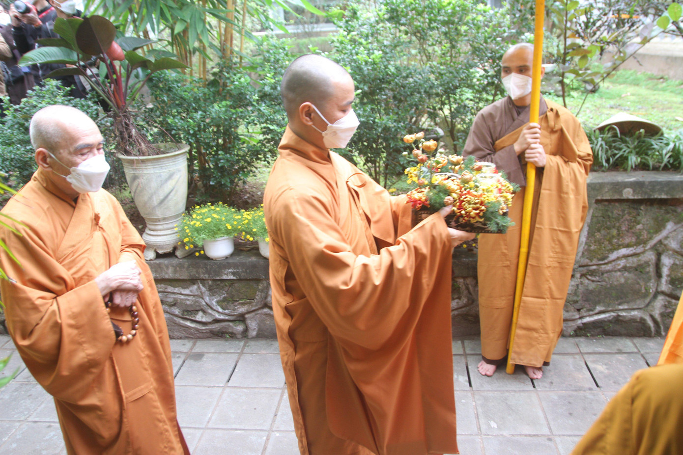 Quý thầy tại Tổ đình Từ Hiếu và tăng thân Làng Mai sắp xếp tang lễ theo nghi thức tâm tang.