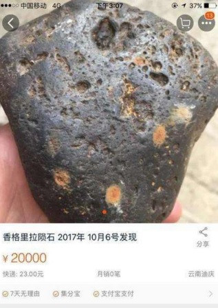 Những viên đá được quảng cáo là lấy từ địa điểm rơi thiên thạch đã bị gỡ khỏi Taobao. Trang thương mại điện tử này nói rằng họ không cho phép bán hàng “fake” và sẽ phạt/cấm những ai bán hàng giả.
