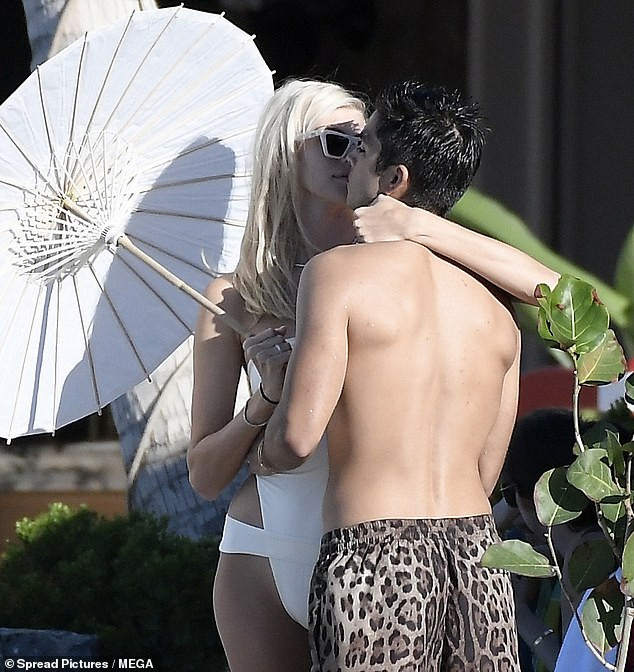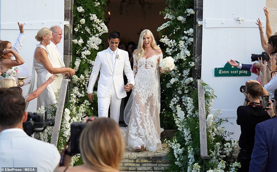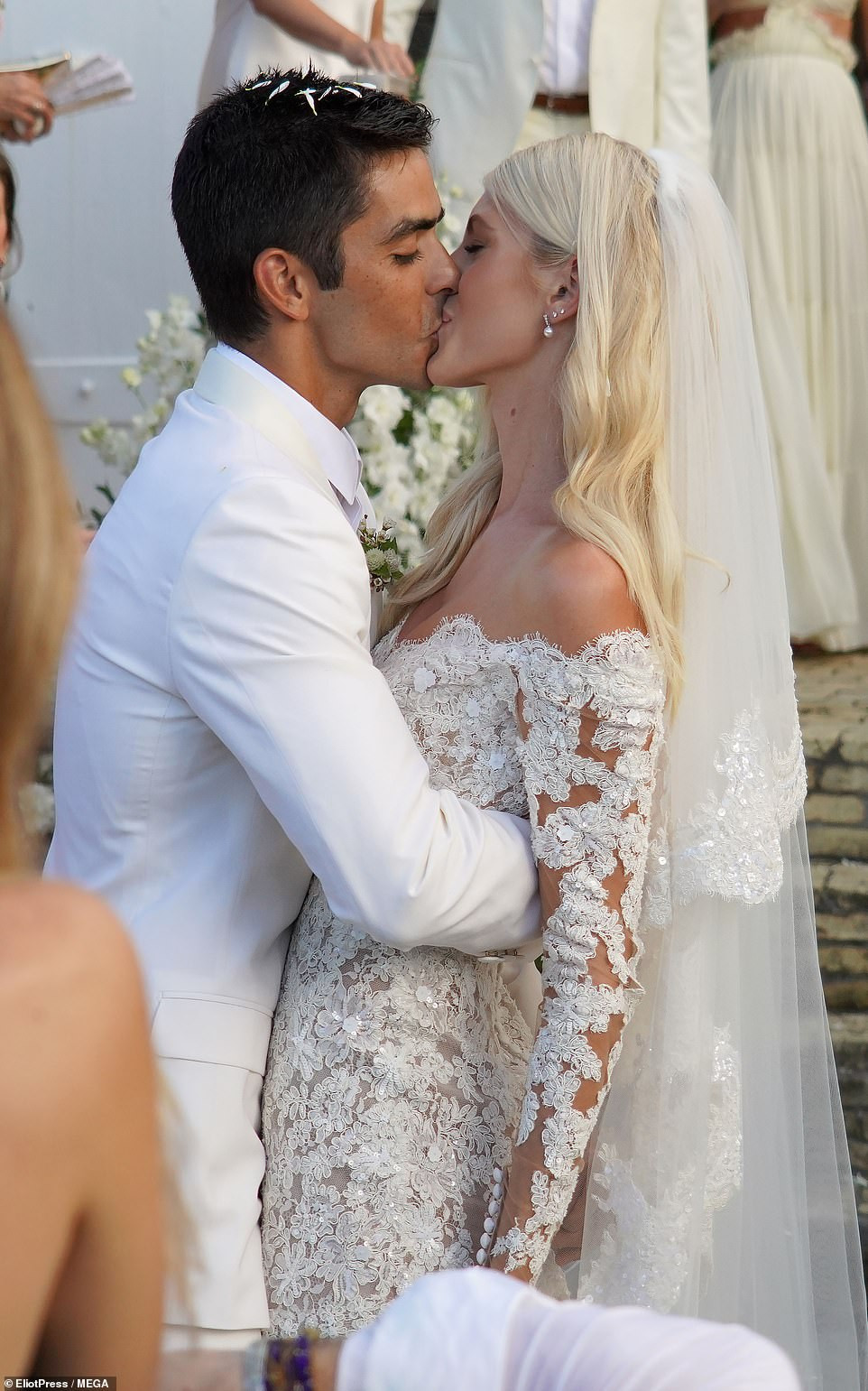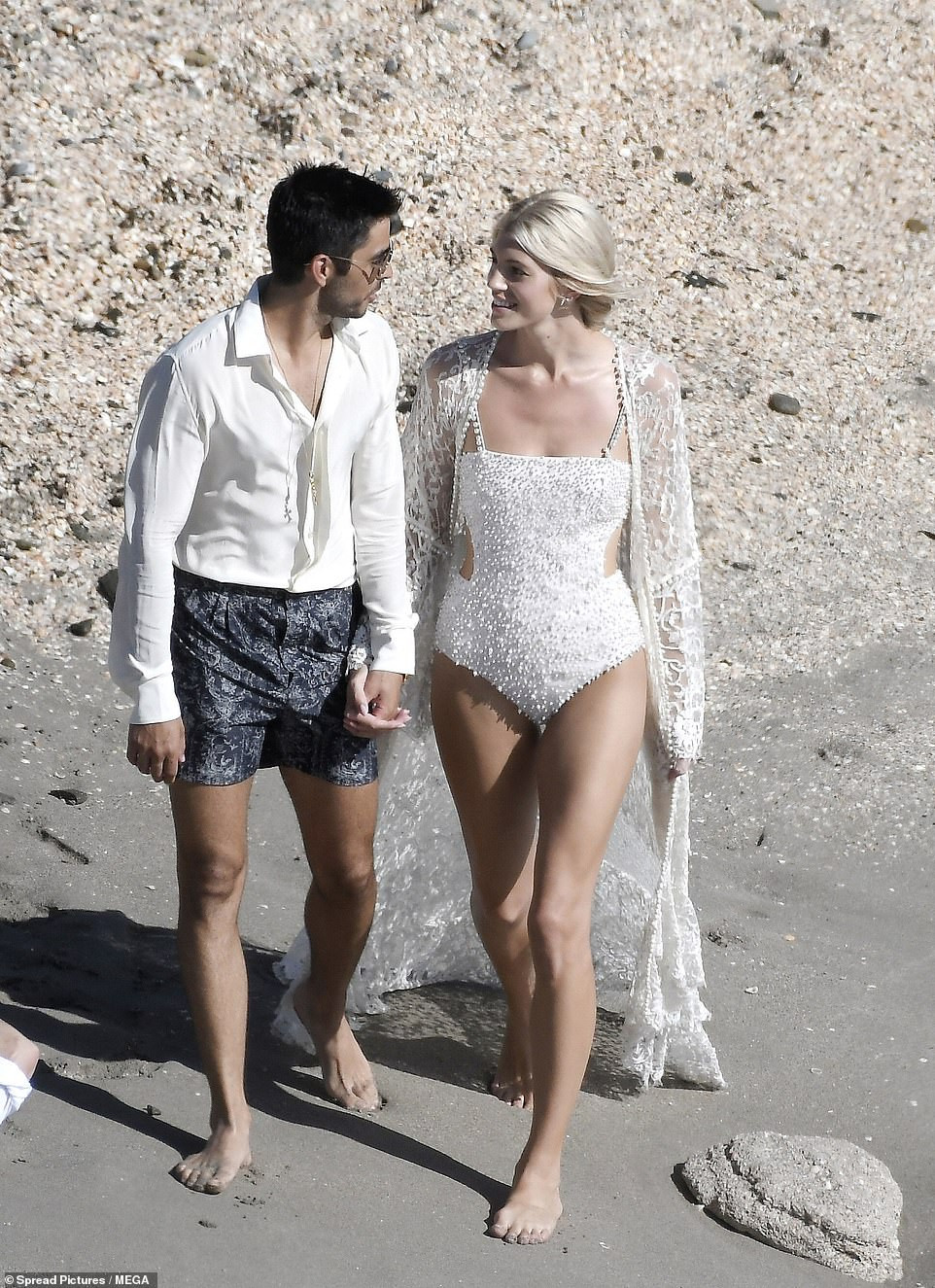 Trước đó, cô dâu chú rể đã có một ngày vui tưng bừng chụp ảnh ở bãi biển St. Barts. Nàng mẫu tóc vàng khoe dáng vóc hoàn hảo như nữ thần với áo tắm.