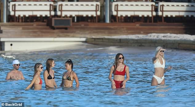 Đôi uyên ương còn mời các cô bạn gái thân thiết là cả dàn mỹ nhân chân dài đến chung vui trong bữa tiệc bãi biển náo nhiệt.