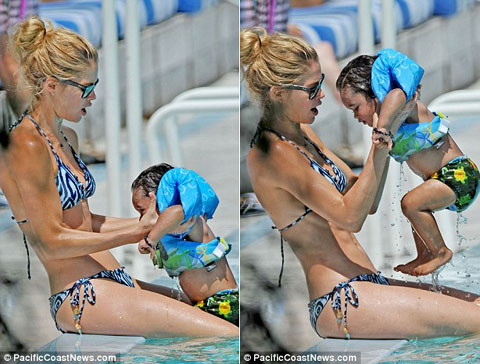 Siêu mẫu 27 tuổi đang có chuyến nghỉ mát hạnh phúc cùng chồng và cậu con trai nhỏ bé của cô. Diện một bộ bikini hai mảnh, cô nàng đã thu hút mọi ánh nhìn tại bể bơi.