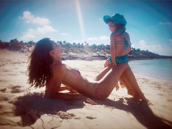 Lily mặc gợi cảm đi tắm biển bên con gái đầu Dixie.