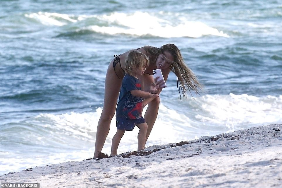 Biểu tượng gợi cảm Nam Phi hào hứng chụp ảnh con.