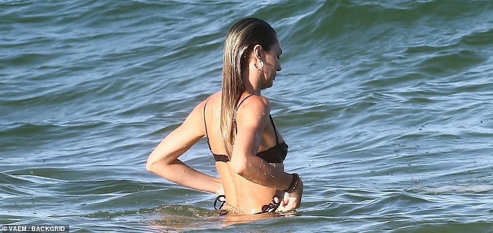 Eo thon săn chắc, vòng 3 tròn đầy, mỹ nhân tóc vàng nổi bật trên biển Miami.