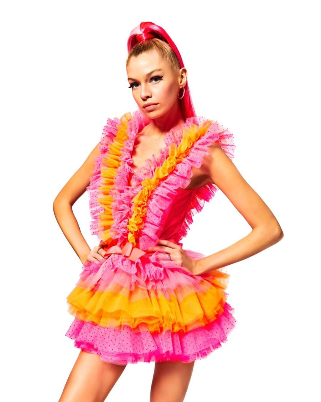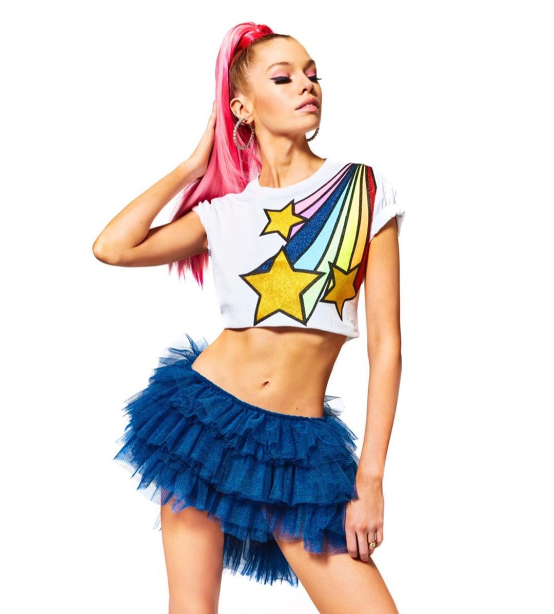 Dù năm nay đã 30 tuổi nhưng Stella Maxwell trông trẻ trung như cô gái tuổi teen với phong cách crop top váy ngắn này.