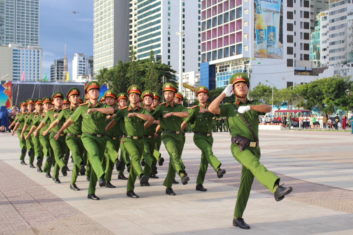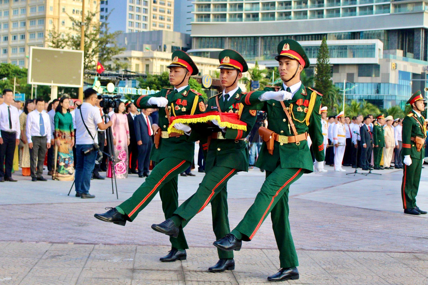 Trong giây phút thiêng liêng, với tiếng nhạc Quốc ca hào hùng, người dân và du khách tại thành phố biển Nha Trang trang nghiêm, cùng hướng về lễ đài với tấm lòng thành kính, đầy tự hào.