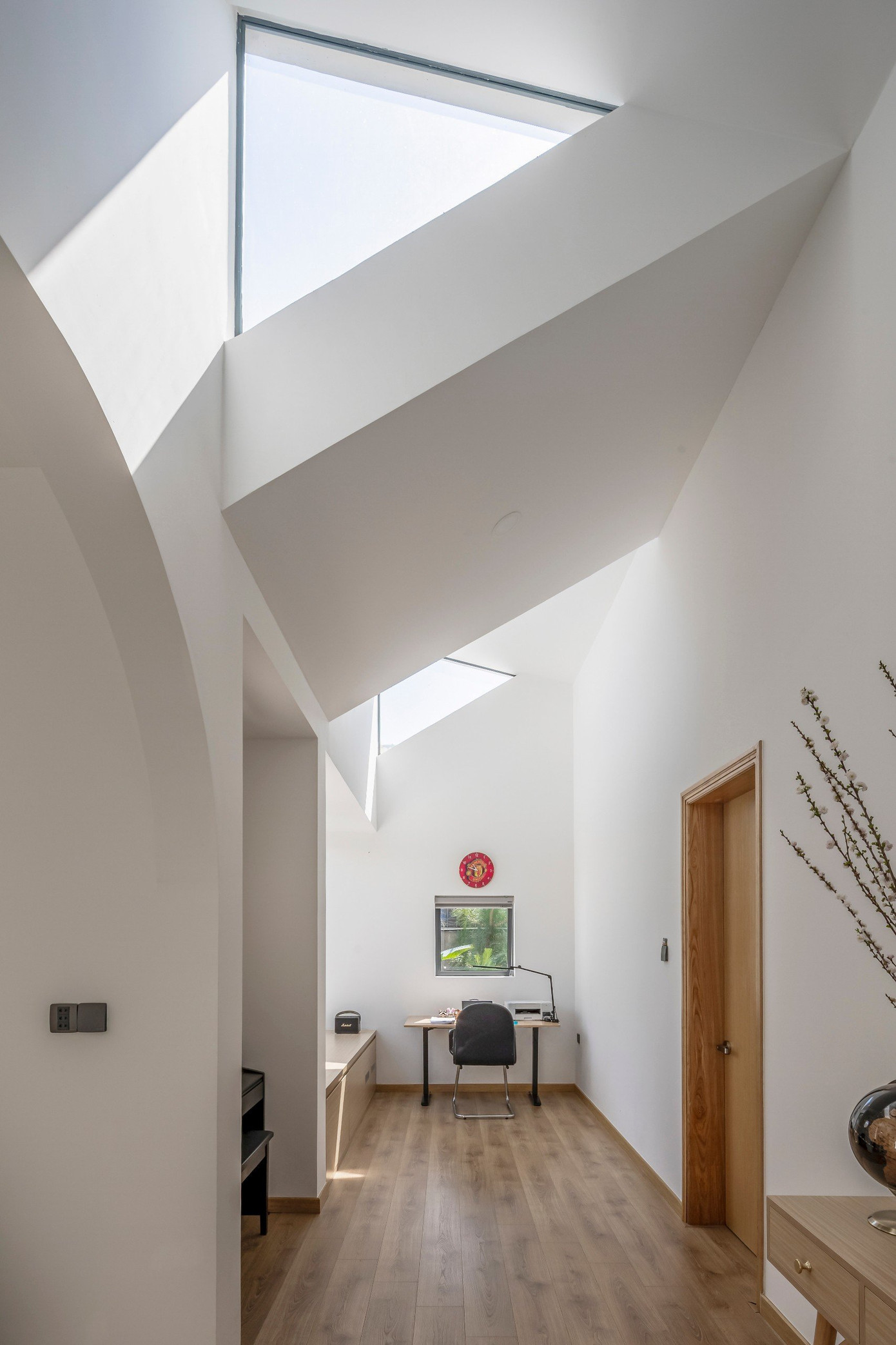 Tâm đắc nhất đối với KTS Lê Thanh Bình có lẽ là phòng làm việc, một không gian được tạo ra với nhiều bố cục hình học đa dạng, tạo cảm giác mới lạ và tràn đầy năng lượng.