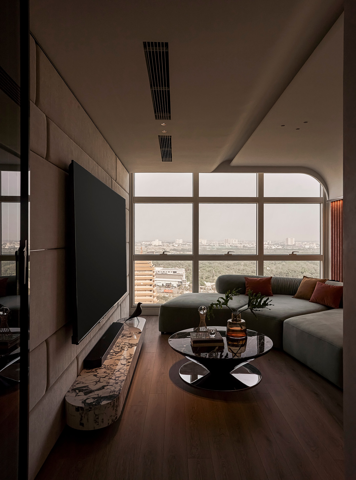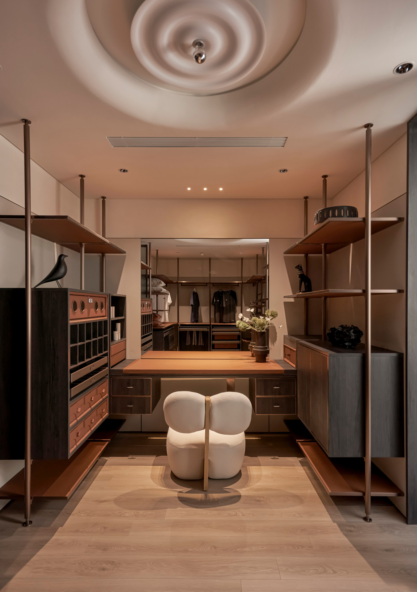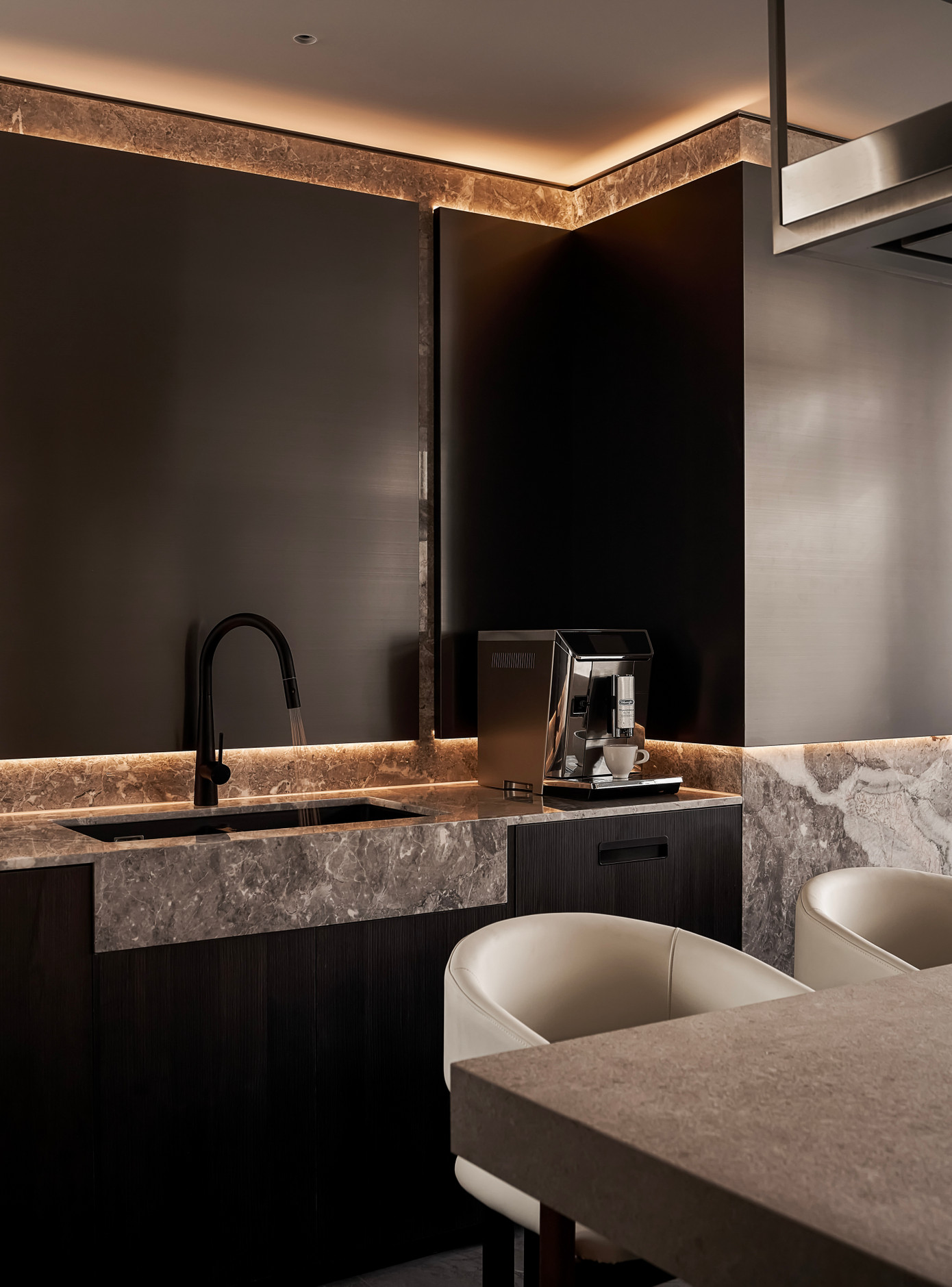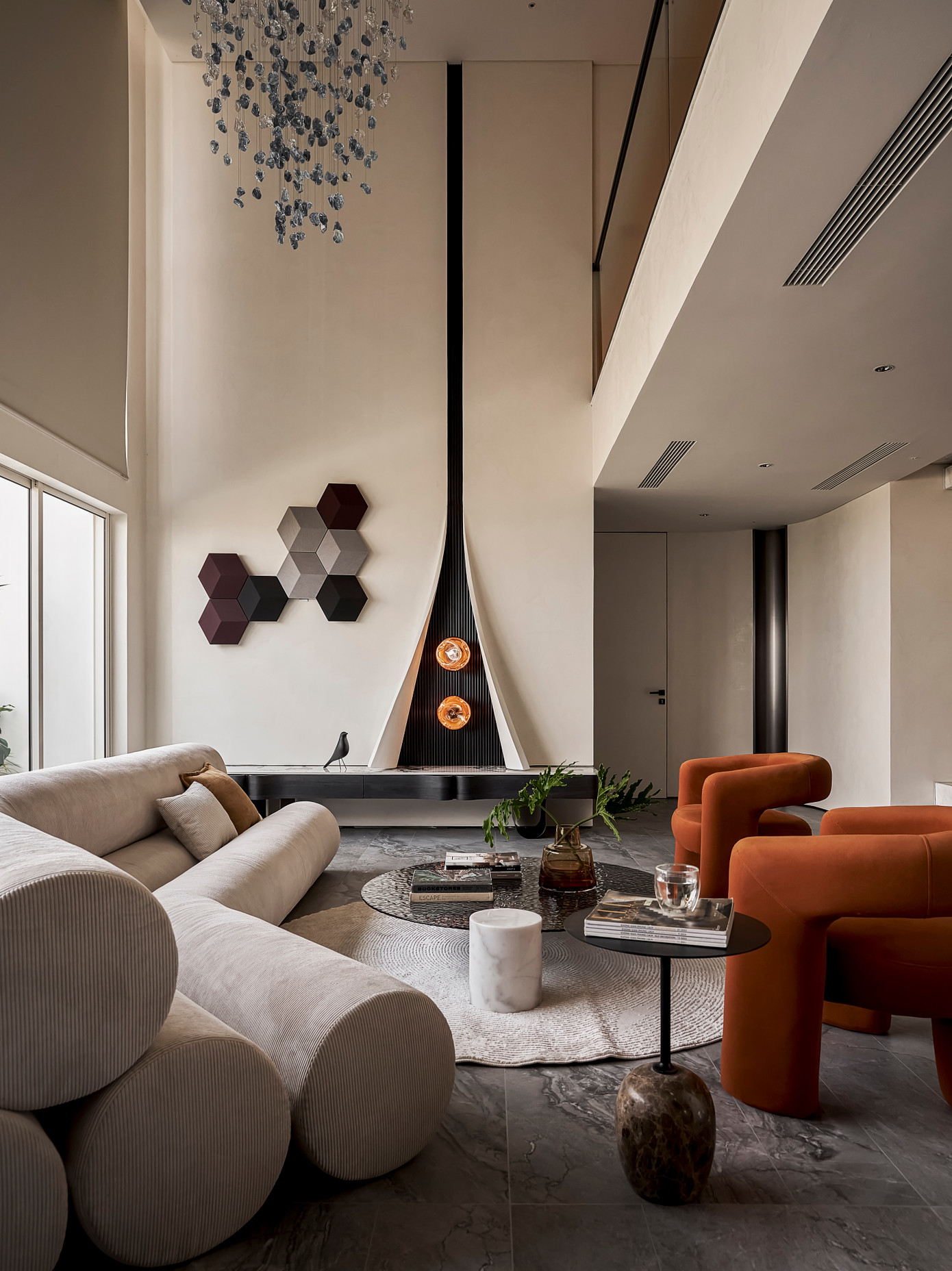 Hình khối tối giản, tông màu begie được chọn làm chủ đạo, những vật liệu có tính chất thân thiện hơn như vải, da thuộc, đá tự nhiên có độ bóng mờ,... được đưa vào sử dụng xuyên suốt các khối không gian. Căn penthouse ấm cúng, thân thuộc nhưng vẫn sang trọng, cao cấp.