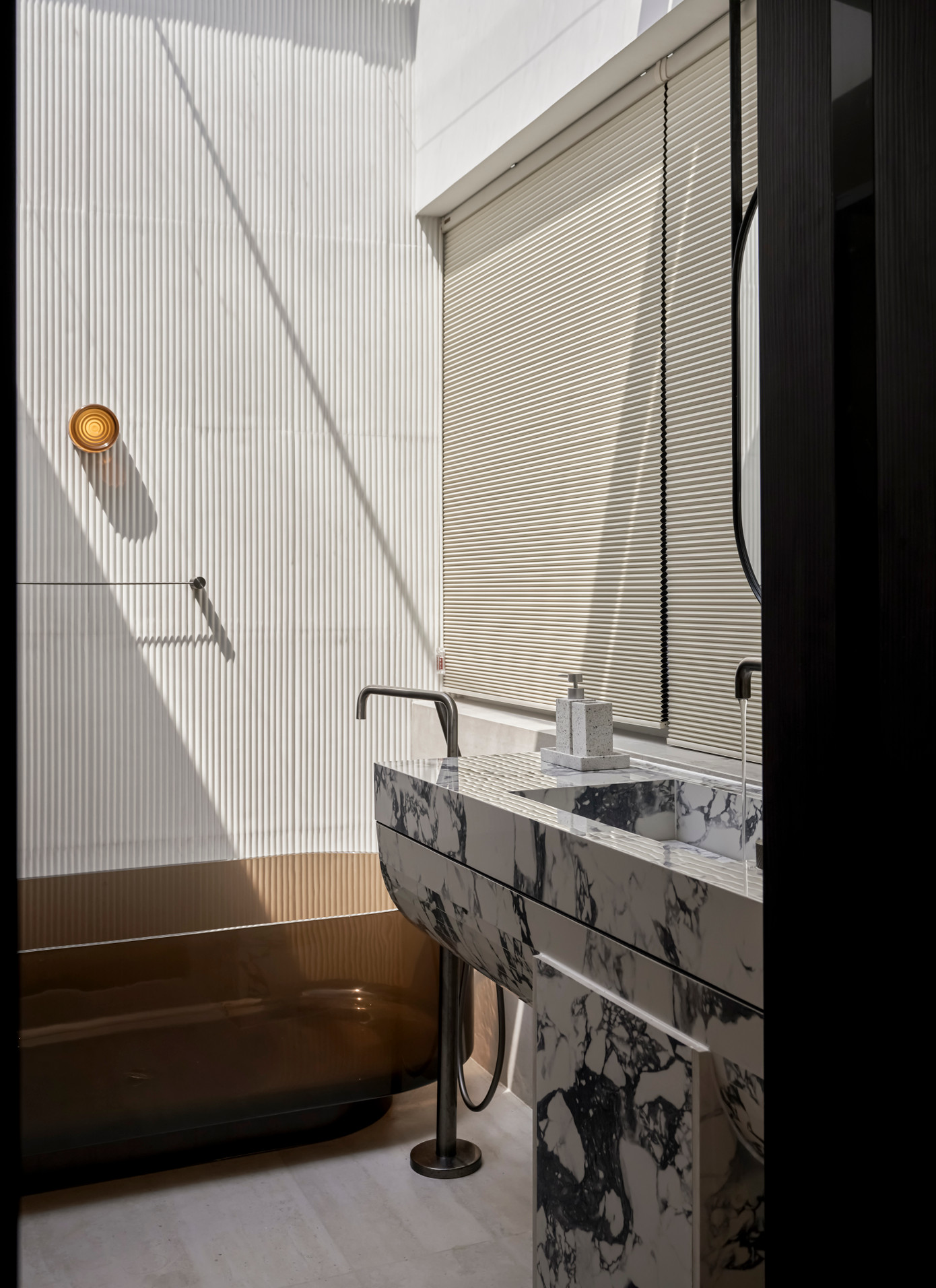Theo kiến trúc sư: “Chủ nhân căn hộ là người yêu thích sự đơn giản không chỉ trong hình thức mà cả trong cách sống. Đây là điểm khởi đầu cho tính thẩm mỹ của cuộc cải tạo.” Vậy nên, những yếu tố có mặt trong công trình phải vừa đúng, vừa đủ ngay tại thời điểm và địa điểm đó. Mọi chi tiết đều cần được cân nhắc kỹ lưỡng để giữ lại hoặc loại bỏ nhằm đạt được sự tối giản mà vẫn đủ đầy.