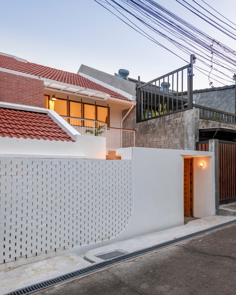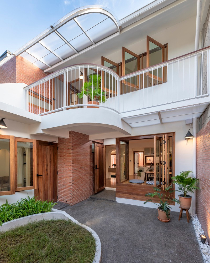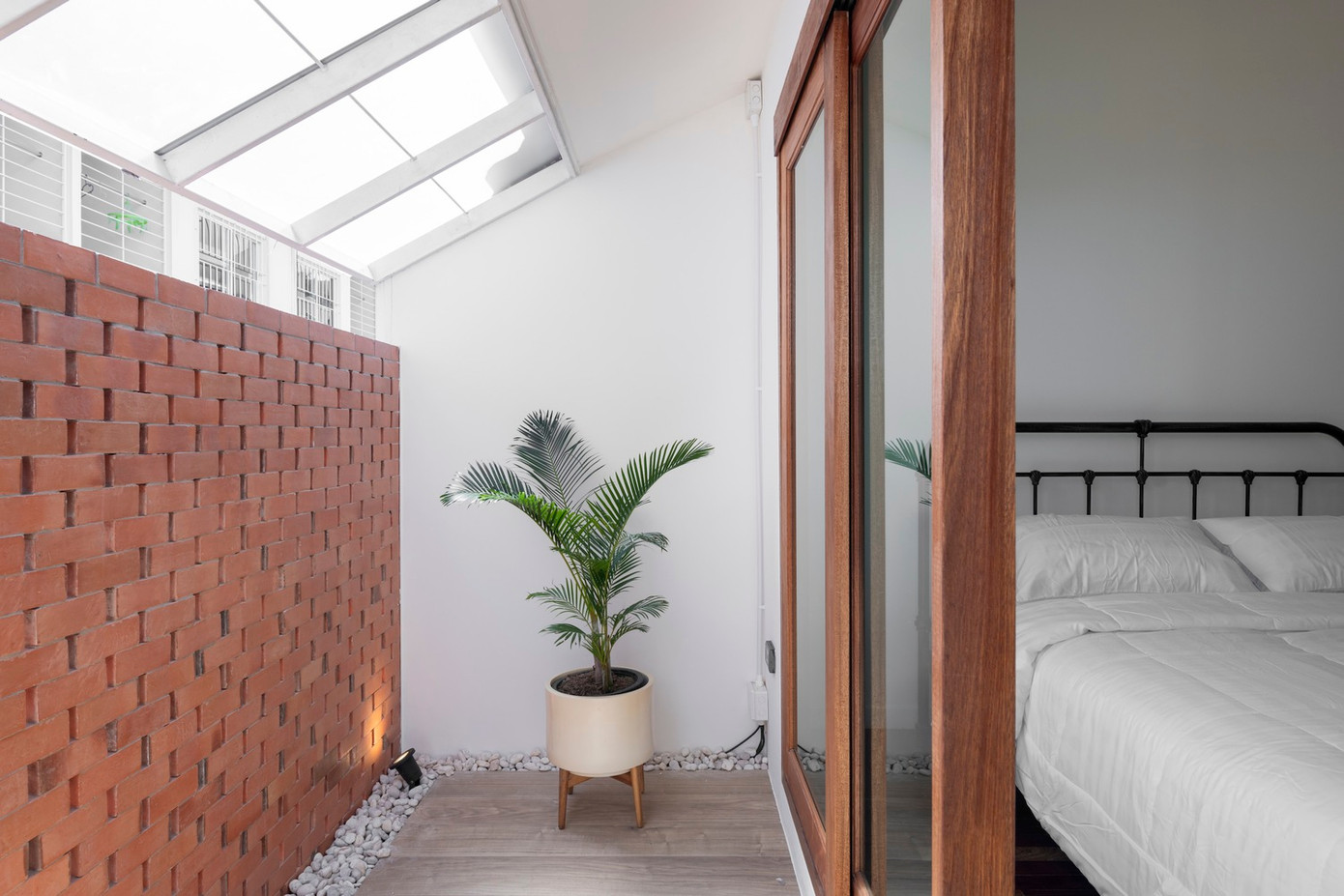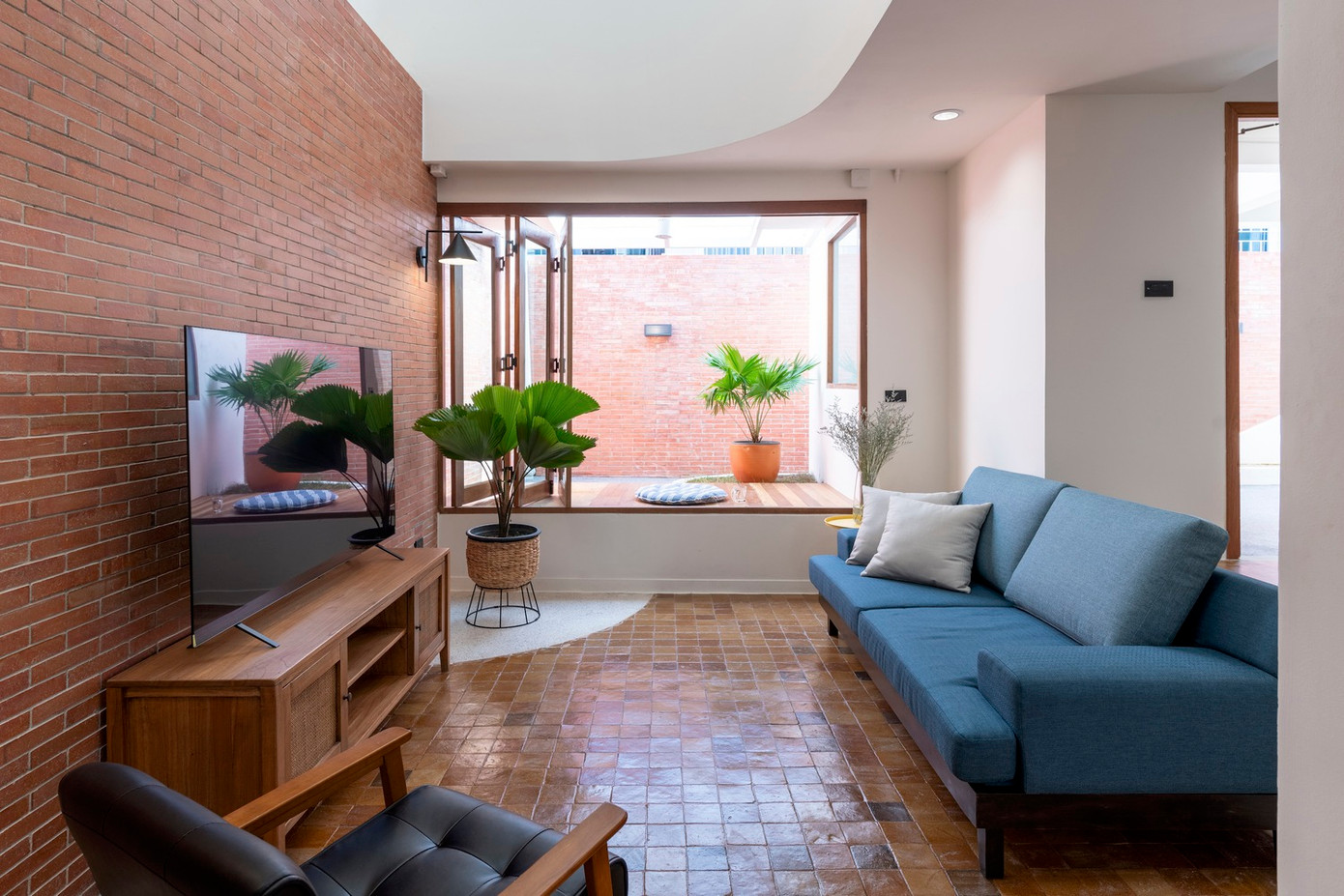 Để giúp ngôi nhà có cảm giác nhẹ nhàng hơn mà không làm gián đoạn cấu trúc ban đầu của nó. Cách phối màu được giữ ở mức tối thiểu với tông màu trắng và làm ấm bằng cách sử dụng các vật liệu phản ánh thiên nhiên, chẳng hạn như gạch, ngói và gỗ kết nối liền mạch giữa ngoại thất và nội thất.
